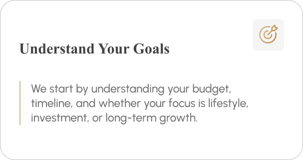 Our process is designed to make property buying simple, transparent, and well-informed especially for local and international buyers.